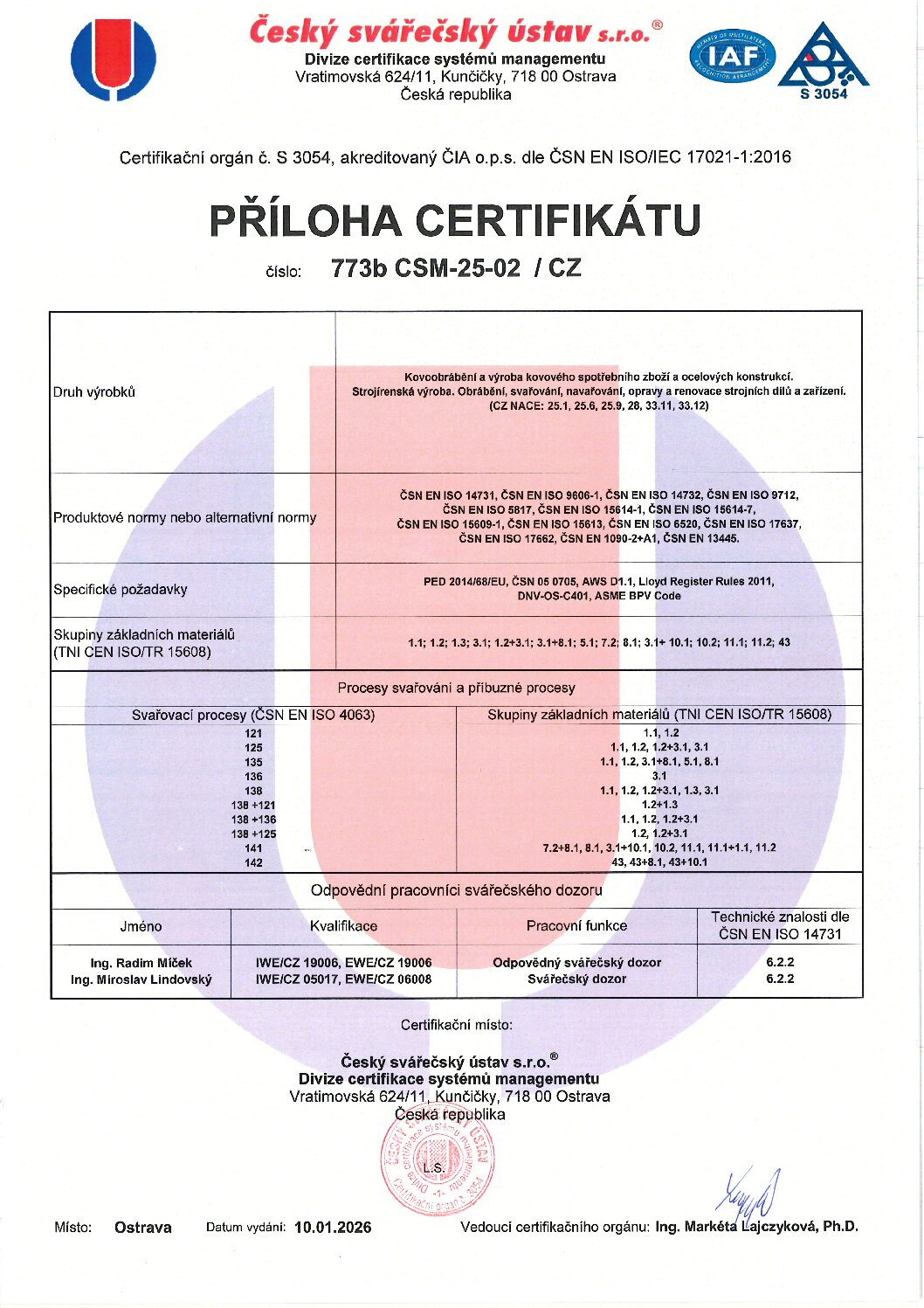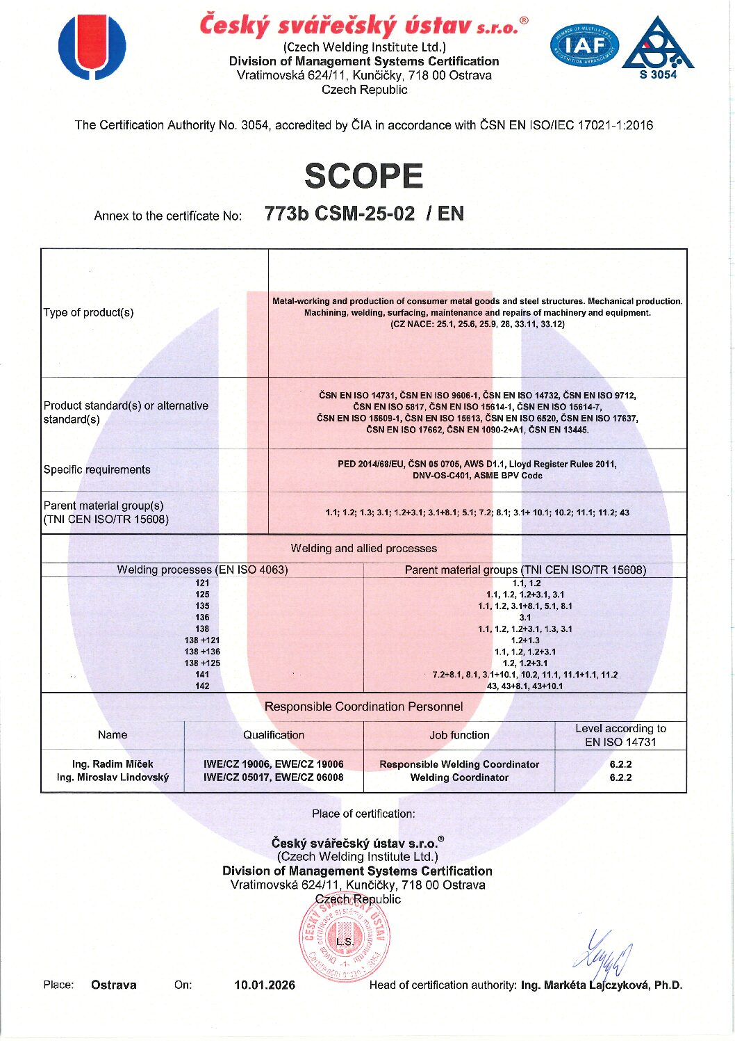 Naši svářeči a svářečští operátoři jsou kvalifikováni dle